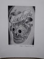 100% heavy-weight water color paper, acid free. hand torn deckle edge, a Giclee print. Very rare, small edition. Mark Mahoney is a Boston born tattoo artist, considered the "founding father" of "Black and Grey" art with a single needle.