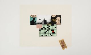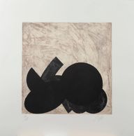 Two sheets of acid-free paper. Bottom sheet is handmade rice paper and the top sheet is a collaged image of a Japanese newspaper also on a 100% rag. The bulk of the print is done by silkscreen.