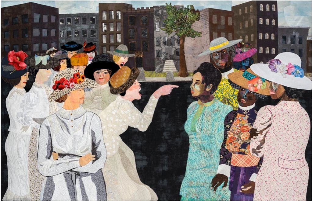 Materials: Cotton and silk fabrics on stretched canvas